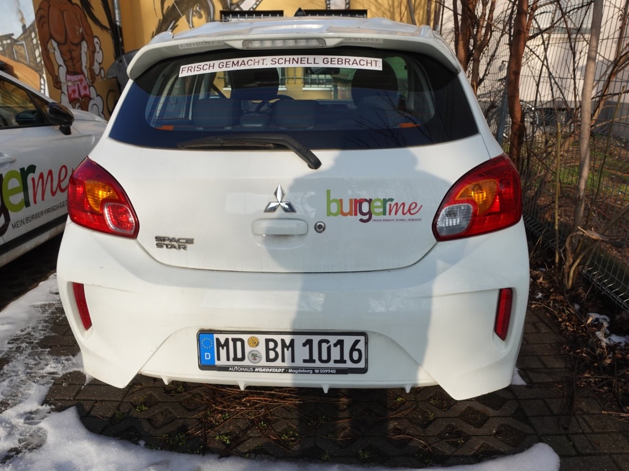 Pkw Mitsubishi Space Star, FIN: MMCXNA03AMH026979, weiß mit Firmenbeschriftung, Lieferdienstfahrzeug, Euro6, Benzin, 1.193 ccm, 52 kW, EZ 21.10.2021, km-Stand lt. Anzeige 47.148 km, HU 04/2027, Stahlfelgen mit Ganzjahresreifen, EFH, 5-Gang-Schaltgetriebe, OHNE KLIMA, Radio